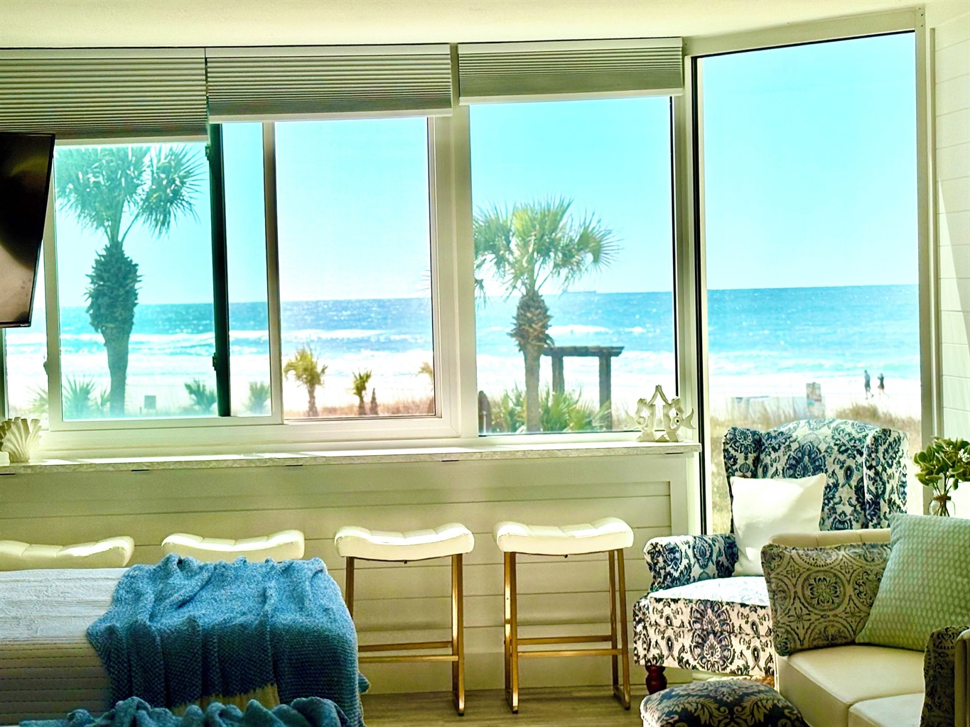 Beach Front Blessings offers two brand new queen beds, new flooring, all new furniture (including mattresses), stainless steel appliances, and a brand new 55" TV.